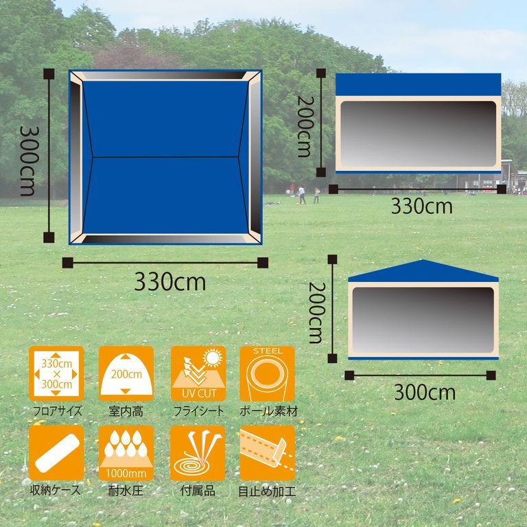 - Размер: длина 330 × ширина 300 × высота 200 см